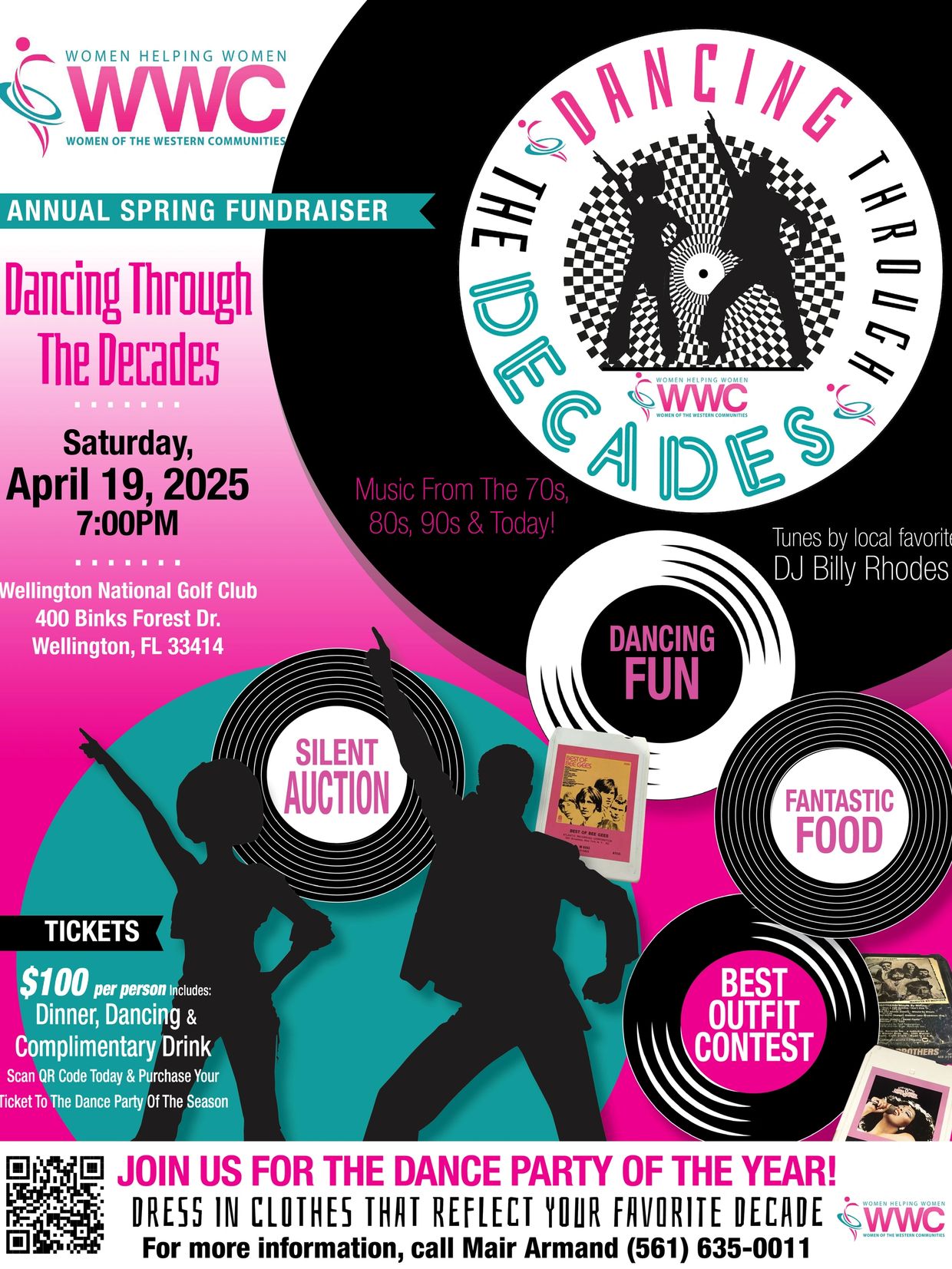 Get ready to boogie the night away as the Women of the Western Communities (WWC) transports you through time with our "Dancing Through The Decades" fundraiser! Dust off your bell-bottoms, tease that punky hair, or rock your favorite modern look because we're set for a groovy night at Wellington National Golf Club on April 19, 2025, starting at 7:00 pm. With a mix of nostalgia, great music, delectable food, and a fantastic silent auction, it's the perfect occasion for couples, friends, or a fabulous Girls Night Out! Secure your $100 ticket by April 6, 2025, and let's make this dance party the talk of the town! Local favorite DJ Billy Rhodes will be spinning all your favorite tunes from the 70s through today!